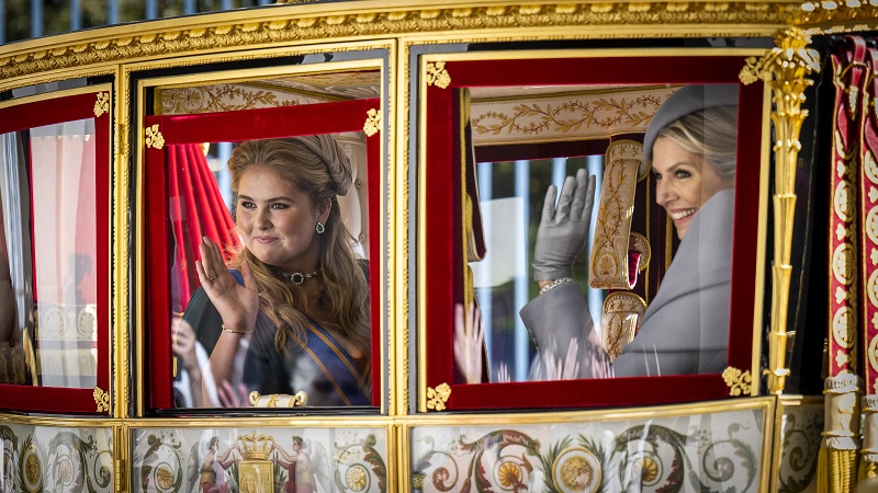 Koning Willem-Alexander, koningin Máxima en prinses Amalia zijn richting Paleis Noordeinde vertrokken. Daar vindt de traditionele bordesscène plaats, waarbij het koningspaar, de Prinses van Oranje, prins Constantijn en prinses Laurentien kort zwaaien naar het publiek.