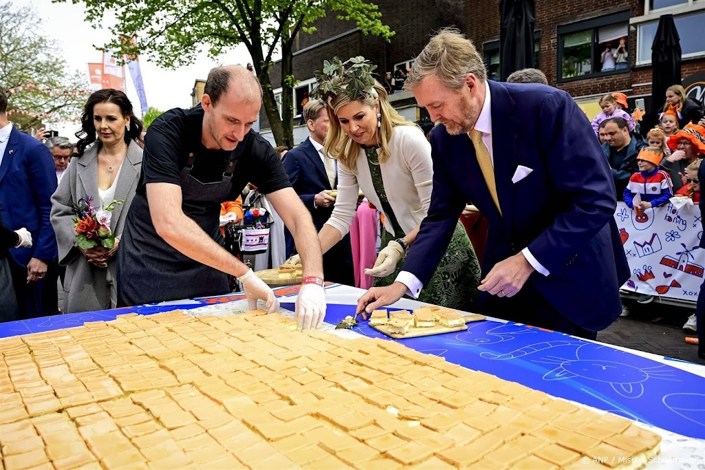 Emmenaren langs de route van Koningsdag kregen zaterdag een tompouce uit handen van de koninklijke familie. Koning Willem-Alexander viert in Emmen zijn 57e verjaardag en daarom trakteert hij op het oranje gebakje. Samen met koningin Máxima en dochters Amalia, Alexia en Ariane deelde hij de tompoucen uit.