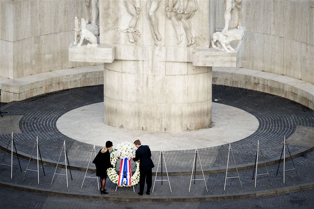 Op de Dam in Amsterdam waren koning Willem-Alexander en koningin Máxima bij de Nationale Herdenking. Even voor 20.00 uur legde het koninklijk paar een krans bij het Nationaal Monument.