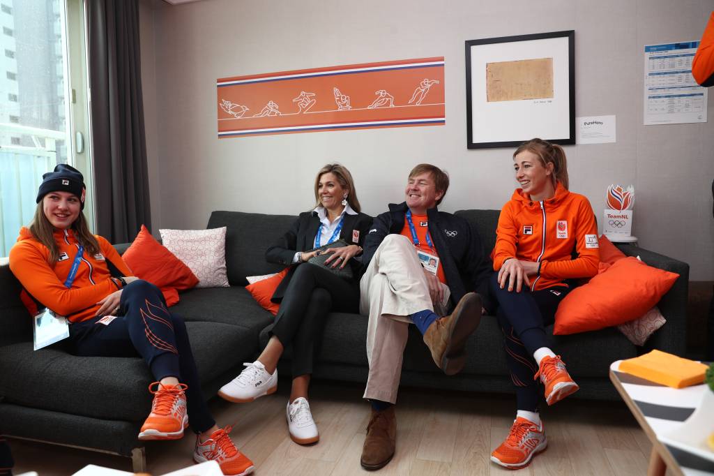 Koning Willem-Alexander en koningin Máxima hebben zaterdagmiddag een bezoek gebracht aan de Nederlandse sporters in het Olympisch dorp. Het koningspaar lunchte met onder meer schaatsster Annouk van der Weijden en shorttrackster Suzanne Schulting. Ook premier Mark Rutte en chef de mission Jeroen Bijl waren van de partij.