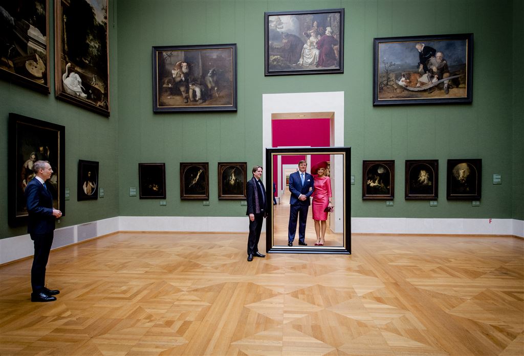 Koning Willem-Alexander en koningin Máxima zijn woensdagmorgen hun tweedaagse werkbezoek aan Beieren begonnen bij de Alte Pinakothek in München. Het koningspaar opende daar de gerenoveerde Höllander-Saal waar Nederlandse schilderwerken uit de Gouden Eeuw hangen. Koning en koningin liepen daarvoor door de lijst van een schilderij.