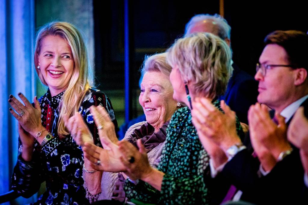 Koning Willem-Alexander, koningin Máxima, prinses Beatrix en prinses Mabel zijn donderdag 6 december in het Koninklijk Paleis Amsterdam aanwezig bij de uitreiking van de Grote Prins Claus Prijs 2018.