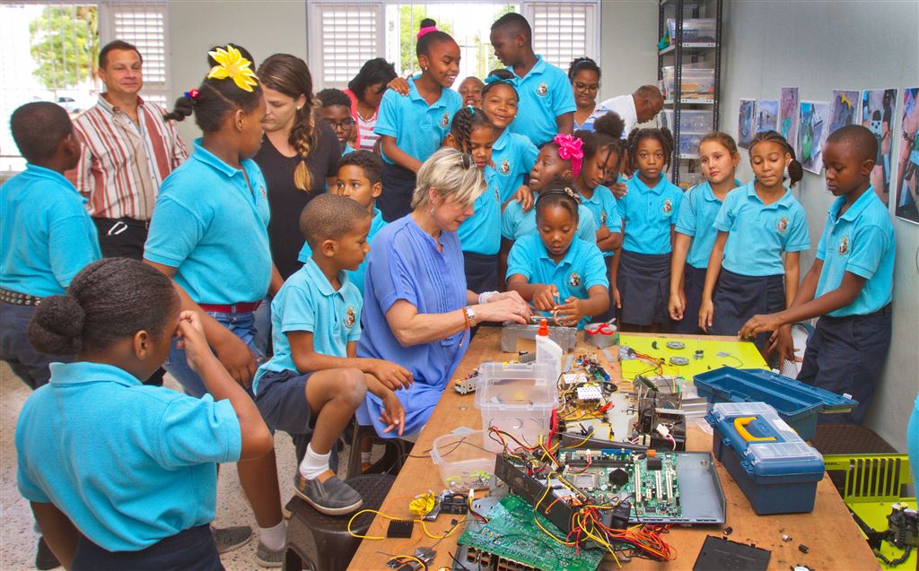Laurentien schoof in het kader van Cura Doet in Willemstad aan bij het project Thinker Shop. Kinderen en jongeren halen onder meer computers uit elkaar om ze een tweede leven te geven. Laurentien vloog begin deze week naar het Caribisch gebied. Op Bonaire woonde ze een conferentie over kinderrechten bij en installeerde ze de Raad van Kinderen.