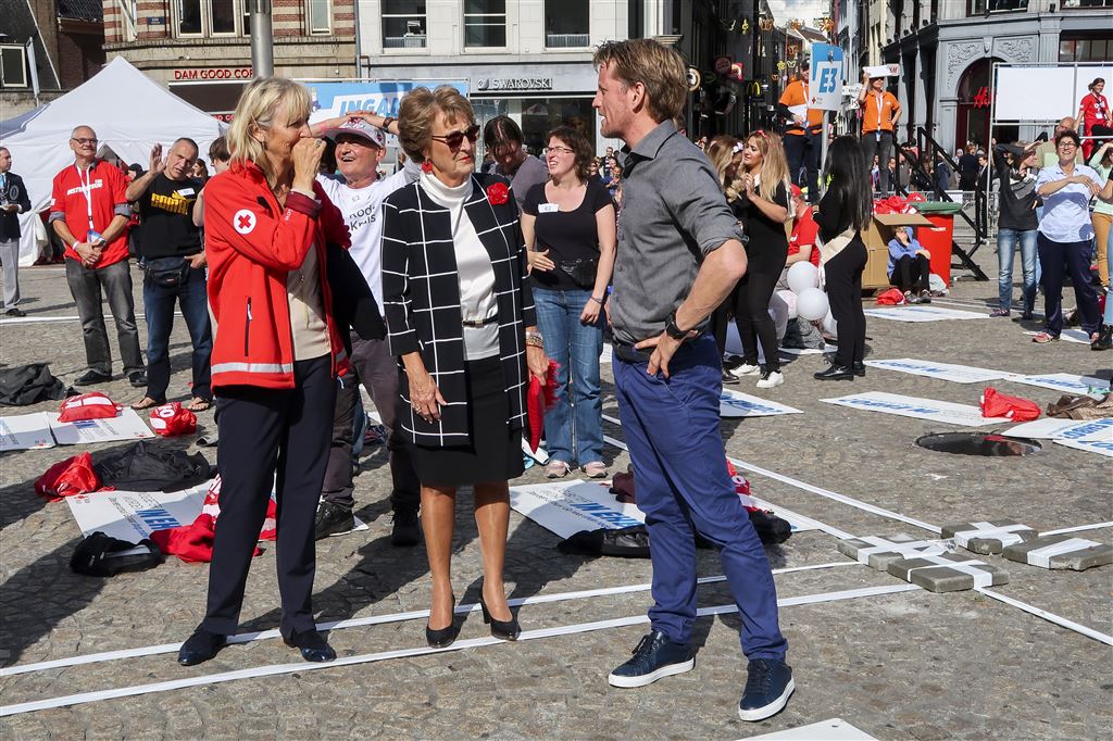 Prinses Margriet en haar zoon Pieter-Christiaan waren zaterdagmiddag op de Dam in Amsterdam getuige van de recordpoging ‘grootste EHBO-cursus ter wereld’ van het Rode Kruis. De actie werd georganiseerd ter ere van het 150-jarig bestaan van de hulporganisatie waarvan Margriet erevoorzitter is en haar zoon vicevoorzitter.