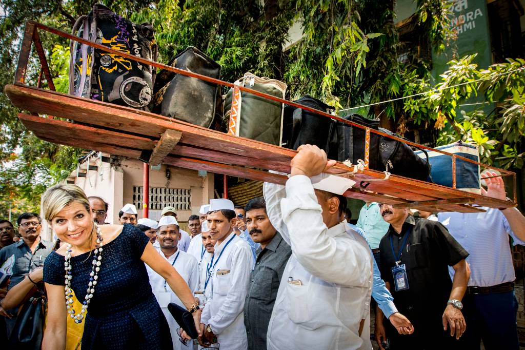 Koningin Máxima heeft woensdagmiddag in Mumbai kennisgemaakt met de voor de Indiase havenstad kenmerkende dabbawala’s. Dat zijn de bezorgers van warme middagmaaltijden die dagelijks over de hele stad verspreid zo’n 200.000 lunches afleveren. De koningin was vooral geïnteresseerd in het nieuwe digitale betaalsysteem, waardoor de bezorgers sneller en veiliger over hun verdiensten kunnen beschikken.