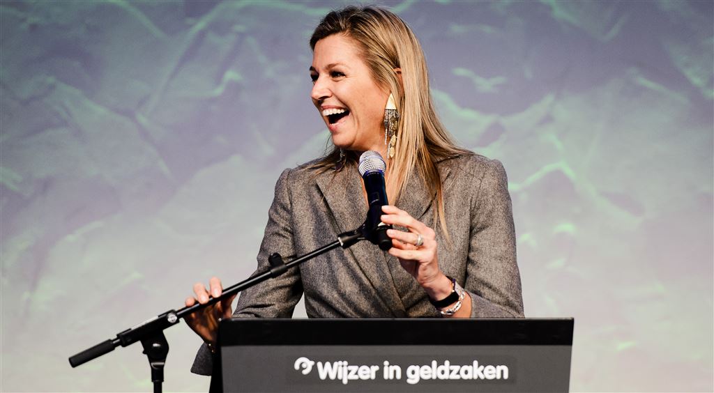 AMSTERDAM – Koningin Màxima was dinsdagmiddag in Amsterdam. Daar heeft de koningin in het Tobacco Theater het jaarlijkse symposium van het platform Wijzer in geldzaken bijgewoond.