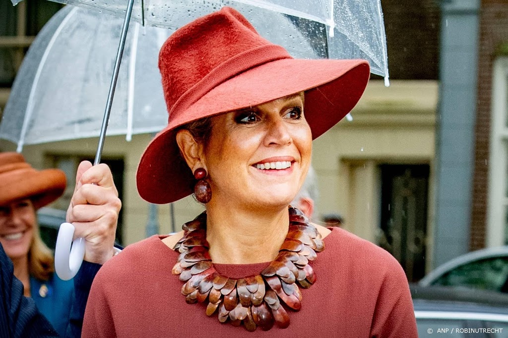 Máxima heeft woensdag weer en wind getrotseerd voor de uitreiking van de ScienceMakers Awards in het Spoorwegmuseum. De koningin werd tegen de regen beschermd met een paraplu en arriveerde goedlachs bij het Utrechtse museum.