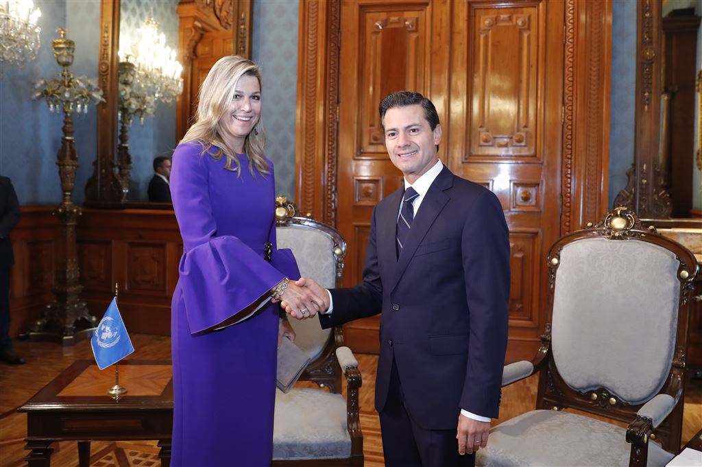 Máxima is in Mexico in haar hoedanigheid van speciaal pleitbezorger van de secretaris-generaal van de Verenigde Naties op het gebied van ‘inclusieve financiering’.