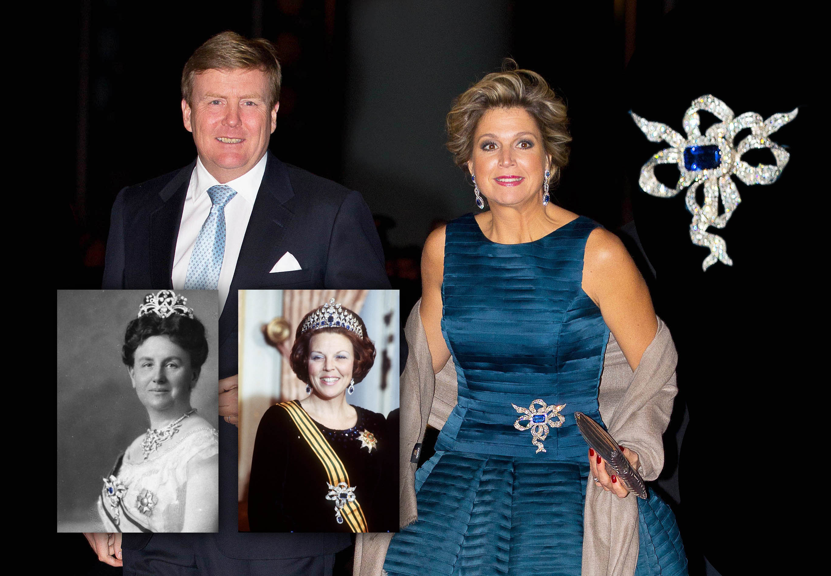 Koningin Máxima droeg tijdens ‘Beatrix met Hart en Ziel’ rond haar middel een bijzonder historisch sieraad. Dit juweel van diamanten met een grote saffier komt maar zelden uit de Oranjekluizen. De saffier dateert uit de tijd van koningin Anna Paulowna. Voor koningin Wilhelmina is er dit sieraad van gemaakt.