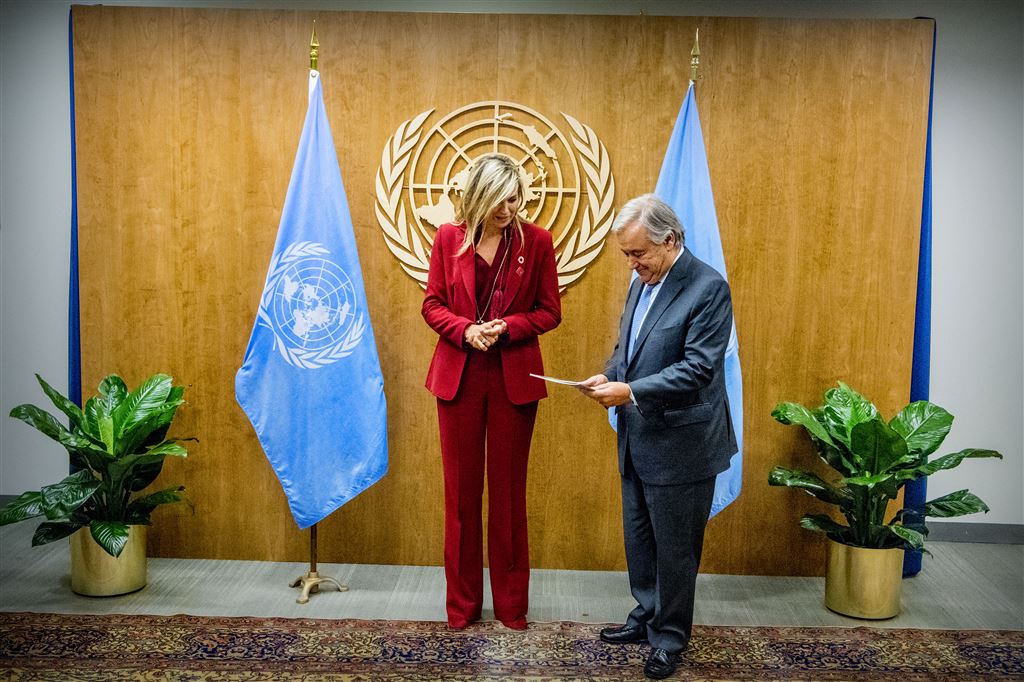 Koningin Máxima heeft woensdagavond in het hoofdkantoor van de Verenigde Naties in New York haar jaarverslag overhandigd aan secretaris-generaal Antonio Gutteres. Ze deed dat in haar hoedanigheid als zijn bijzondere pleitbezorger voor bevordering van toegankelijkheid tot financiële diensten. Het was de eerste keer dat de koningin haar rapportage aanbood aan Gutteres. De Portugees is begin dit jaar aangetreden als opvolger van Ban Ki-moon.