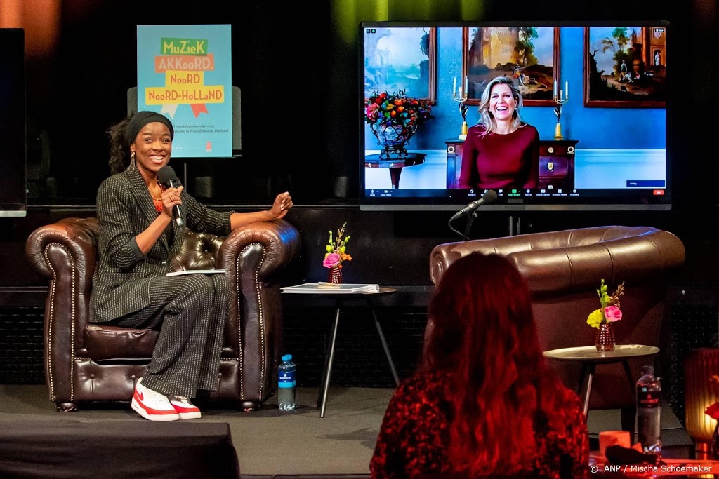 Via een groot scherm nam Máxima deel aan de feestelijke aftrap voor muziekonderwijs in Noord Noord-Holland. Het programma werd vanuit Podium Victoria in Alkmaar gepresenteerd door presentatrice en zangeres Giovanca.