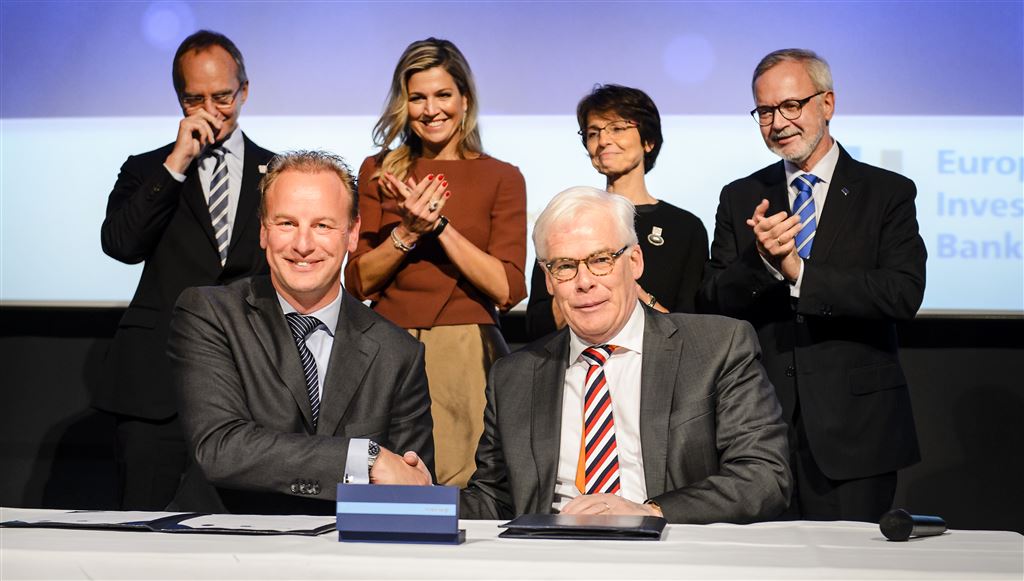AMSTERDAM – Koningin Máxima zag donderdagmiddag hoe de Europese Investeringsbank een lening van 100 miljoen euro verstrekte aan Qredits Microfinanciering Nederland. De koningin en minister Henk Kamp van Economische Zaken woonden de ondertekening bij.