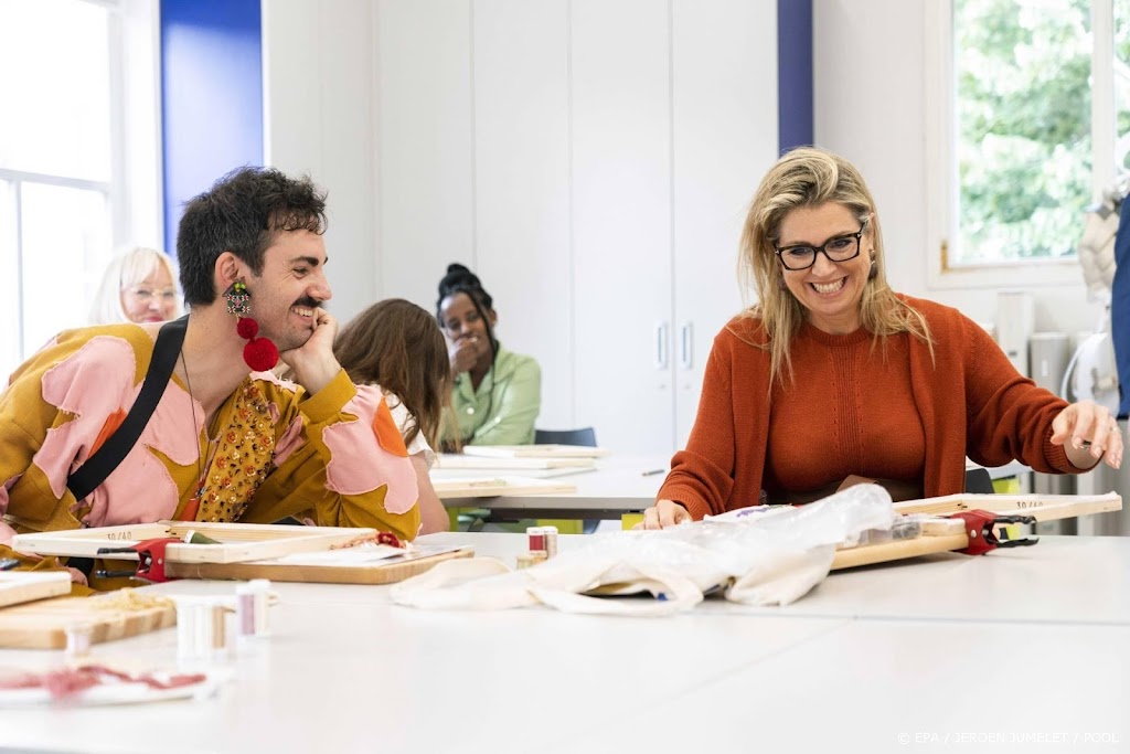 Een van hen is Theodor Adriaans van Queer Needlework Circle, een organisatie die met het borduren een veilige plek wil bieden aan lhbti’ers. “Het is zo’n eer dat de koningin langs is gekomen om te helpen. Ze zei vooraf dat ze niet zo goed was in borduren, maar ze kan het hartstikke goed”, vertelt Adriaans. Door het hele land organiseert Queer Needlework Circle handwerkactiviteiten zoals breien en borduren voor de lhbti-gemeenschap. “Ondertussen praten we op een ontspannen manier over allerlei onderwerpen die ons bezighouden, zoals gender en seksualiteit. Het feit dat iemand als de koningin hier is, bevestigt dat we iets goed doen en dat we gezien worden. Dat is heel fijn”, vult Adriaans aan.
