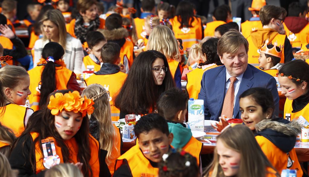 In Veghel gaf het koningspaar het startsein voor de vijfde Koningsspelen. Basisschoolleerlingen in het hele land eten en sporten vrijdagochtend met elkaar. Een mooi initiatief, vindt Willem-Alexander. “Ik vind het prachtig en vooral heel belangrijk dat meer dan een miljoen kinderen samen kunnen eten en sporten.”