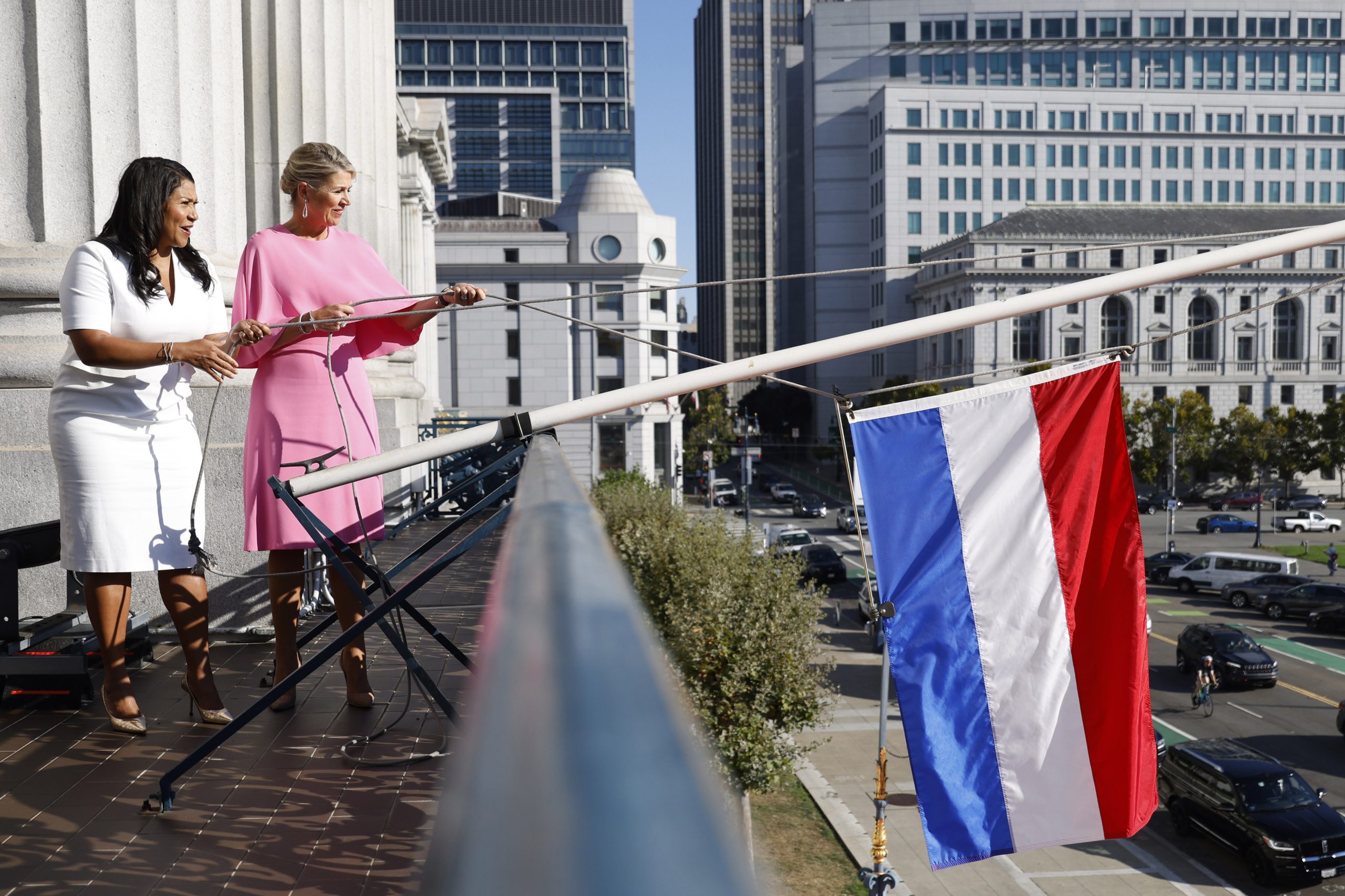 Koningin Máxima is woensdag tegen 9.00 uur (lokale tijd) in San Francisco begonnen met haar werkbezoek aan de Verenigde Staten. Zij werd welkom geheten door burgemeester London Breed van San Francisco. De twee vrouwen hesen op het balkon van het stadhuis de Nederlandse vlag.
