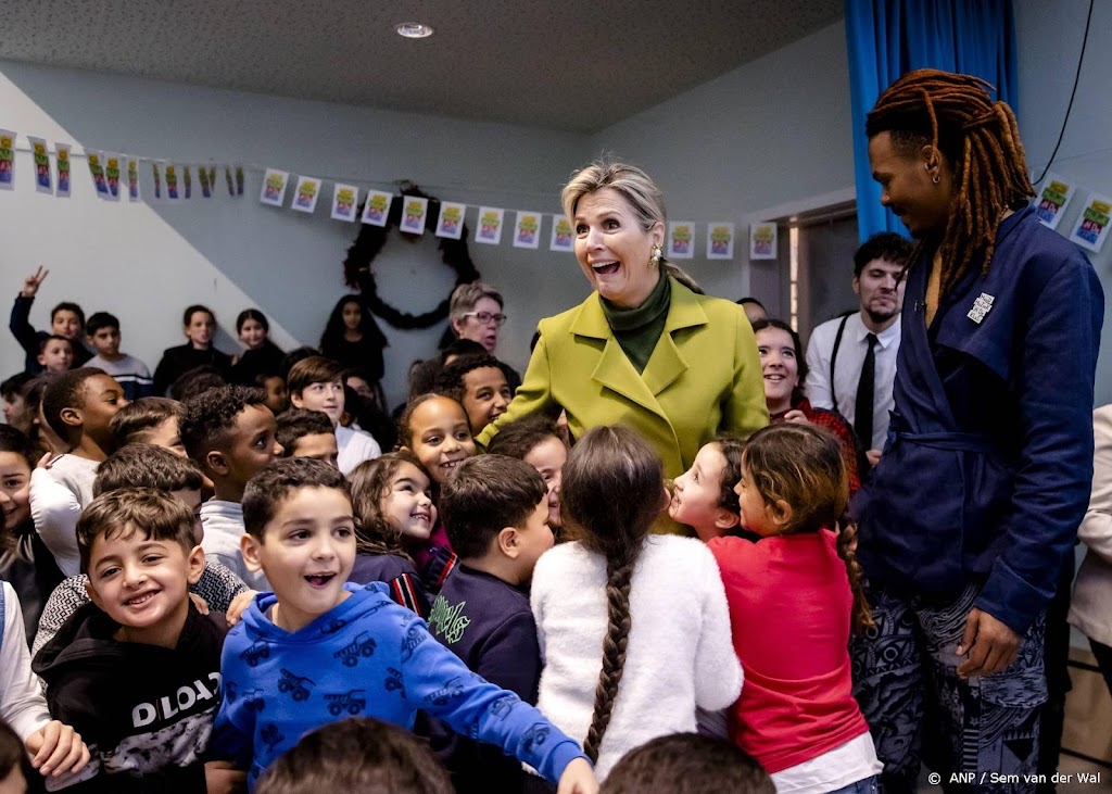 Máxima was naar basisschool De Globe gekomen als erevoorzitter van Méér Muziek in de Klas. De school doet mee aan de Grootste Schoolband van Nederland tijdens het komende Kerst Muziekgala.