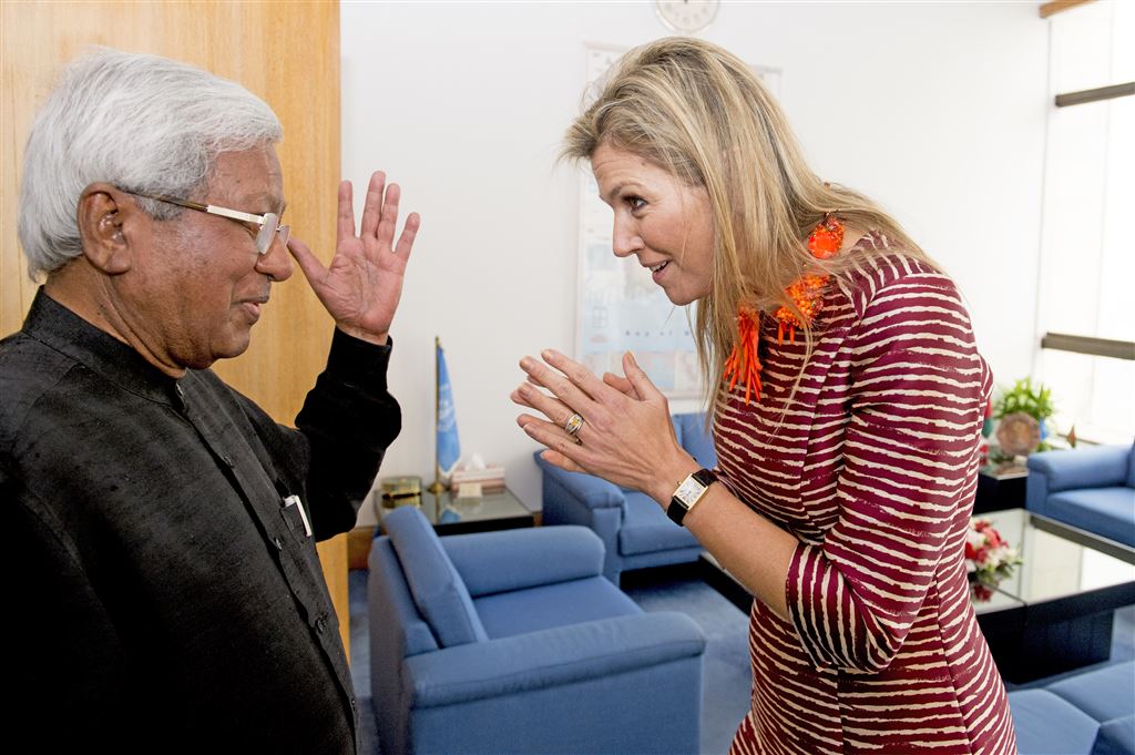 Op de eerste dag van het driedaagse werkbezoek wordt Máxima bijgepraat over de situatie in Bangladesh, waar 69 procent van de bevolking geen bankrekening heeft. Zo ontmoette ze maandagmorgen ook Sir Fazle Abed, de oprichter van Brac, de grootste niet-gouvernementele organisatie ter wereld.