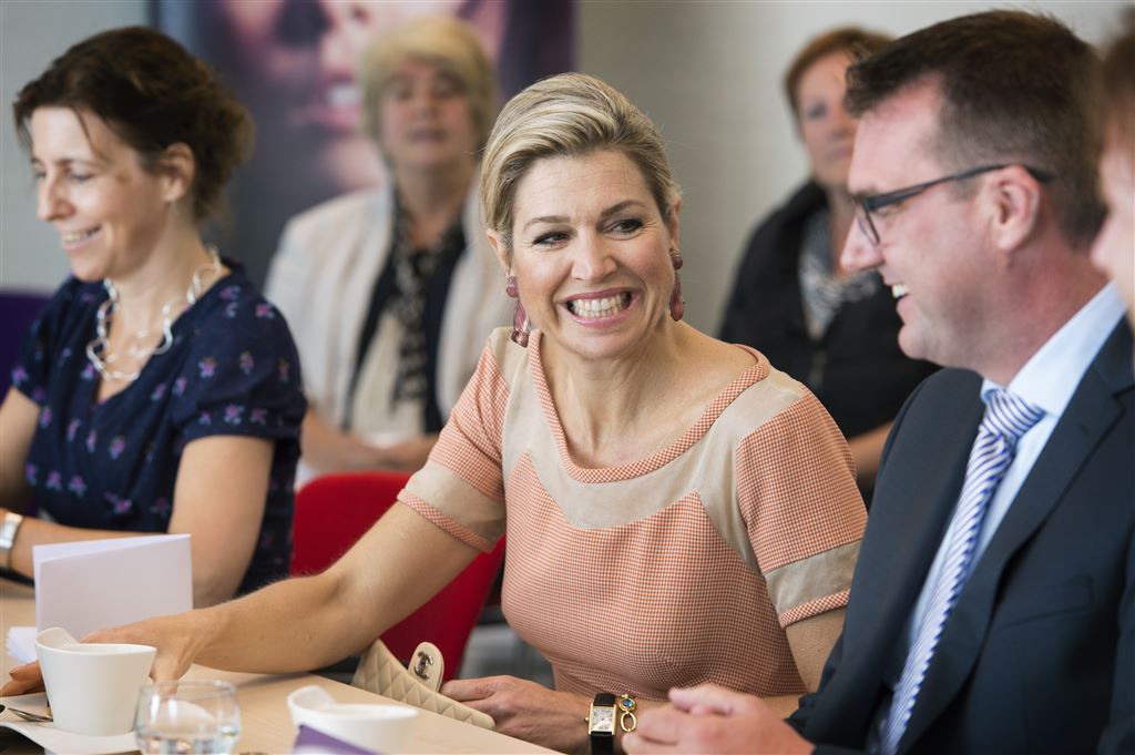 Tijdens het werkbezoek aan de Fontys Hogeschool Kind en Educatie kijkt Máxima naar de mogelijkheden om het muziekonderwijs structureel te verbeteren.
