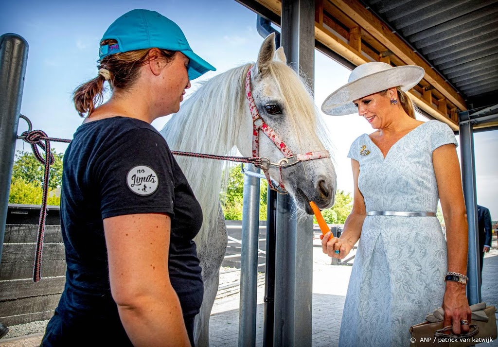 Koningin Máxima heeft dinsdagmorgen in Noordwijkerhout de bijzondere manege ‘No Limits’ geopend. Kinderen en volwassen met een beperking, zoals autisme, het syndroom van Down of ADHD, kunnen daar in een rustige omgeving therapeutische paardrijlessen krijgen.