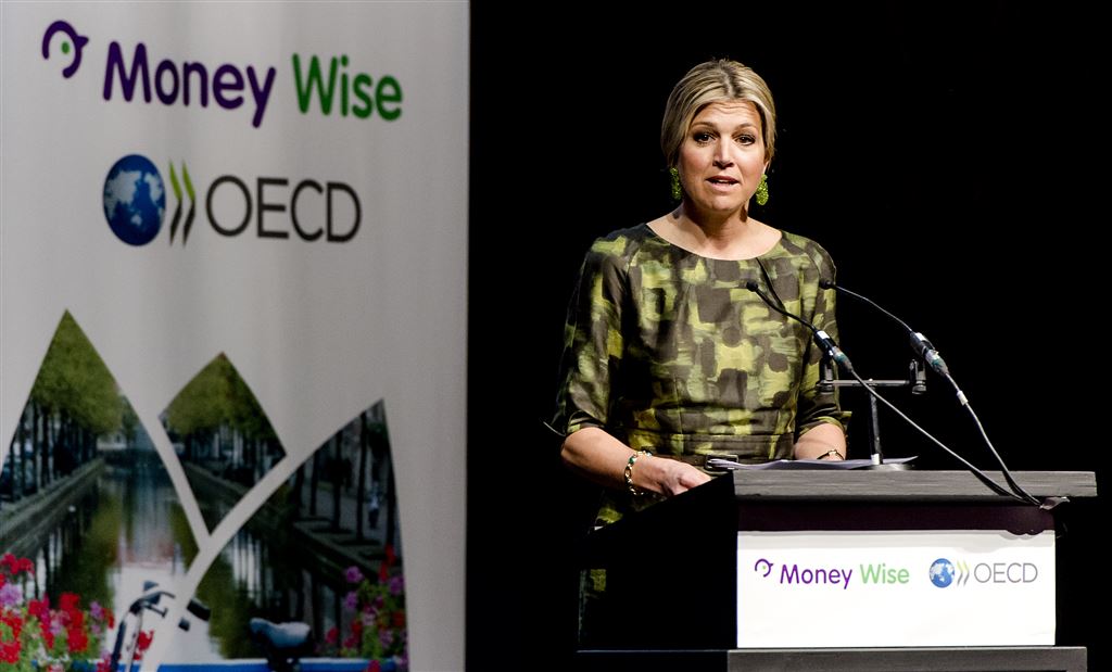 Máxima heeft woensdagochtend in Amsterdam een symposium van de Organisatie voor Economische Samenwerking en Ontwikkeling (OESO) geopend. De koningin hield de openingstoespraak van de tweedaagse conferentie over financiële educatie.