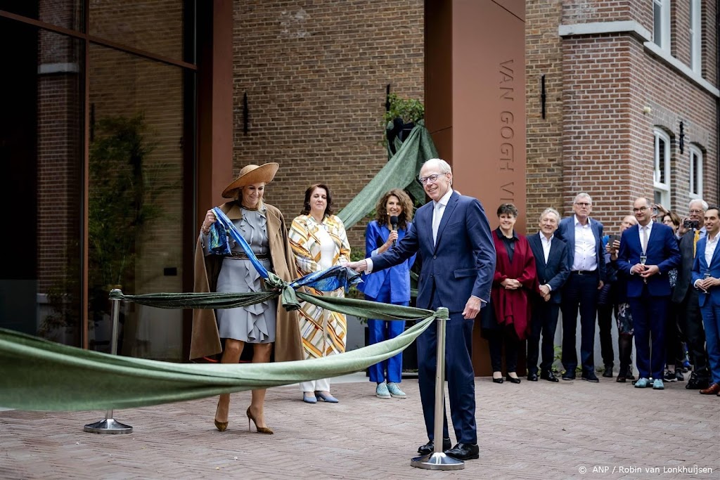 Koningin Máxima heeft dinsdagmiddag het vernieuwde Van Gogh Village Museum in het Brabantse Nuenen geopend. Bij die opening knipte de koningin een groen lint door.