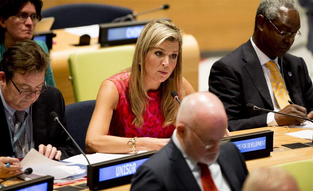 De koningin sprak in haar functie als speciaal pleitbezorger van VN-secretaris-generaal Ban Ki-moon. Haar taak is de VN-lidstaten te bewegen om financiële diensten voor iedereen toegankelijk te maken. Toegang tot diensten als krediet, verzekeringen en sparen spelen ook een rol bij het bestrijden van de gevolgen van klimaatverandering, aldus Máxima.