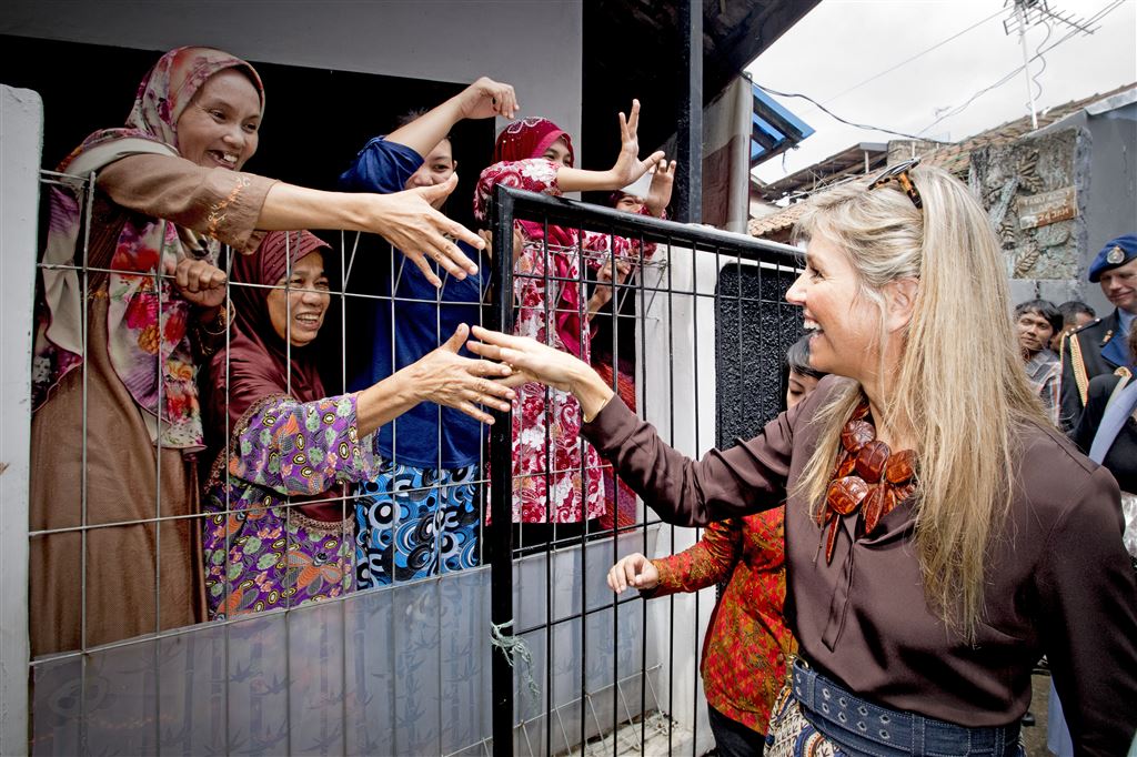 “Veertig procent van de Indonesiërs zweeft rond de armoedegrens”, wist koningin Máxima. “Het is niet alleen belangrijk ze uit die armoede te halen, maar ook te zorgen dat ze niet terugvallen wanneer er tegenslagen zijn. Bankdiensten als verzekeringen en sparen kunnen daar voor zorgen.”