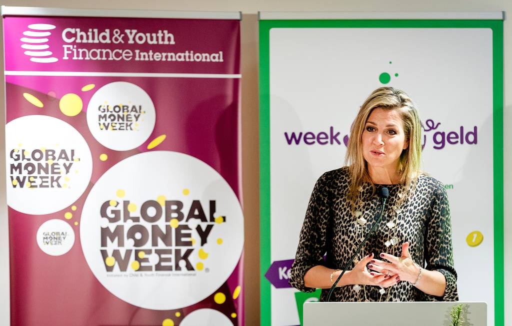 Koningin Máxima is erevoorzitter van het platform Wijzer in geldzaken. In deze functie vraagt zij aandacht voor financiële educatie en verstandig omgaan met geld.