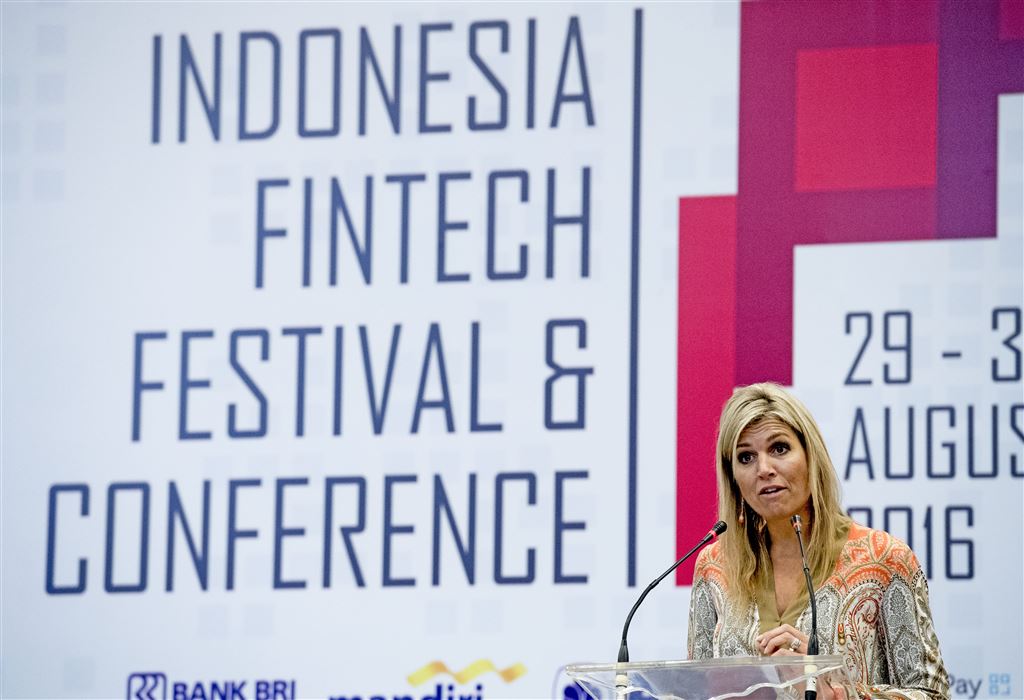 Máxima uitte haar lof aan het slot van het FinTech festival, een tweedaags evenement waarbij bedrijven samenkwamen om te spreken over technische oplossingen en innovaties voor het beter toegankelijk maken van bijvoorbeeld bankdiensten. Dat kan met met e-portemonnees en mobiel bankieren.