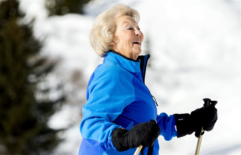 Beatrix nam alleen aan het eerste deel van het fotomoment deel, waarbij in verschillende opstellingen in de sneeuw werd geposeerd. De prinses had veiligheidshalve skistokken meegenomen om stevig op haar skiboots te staan.