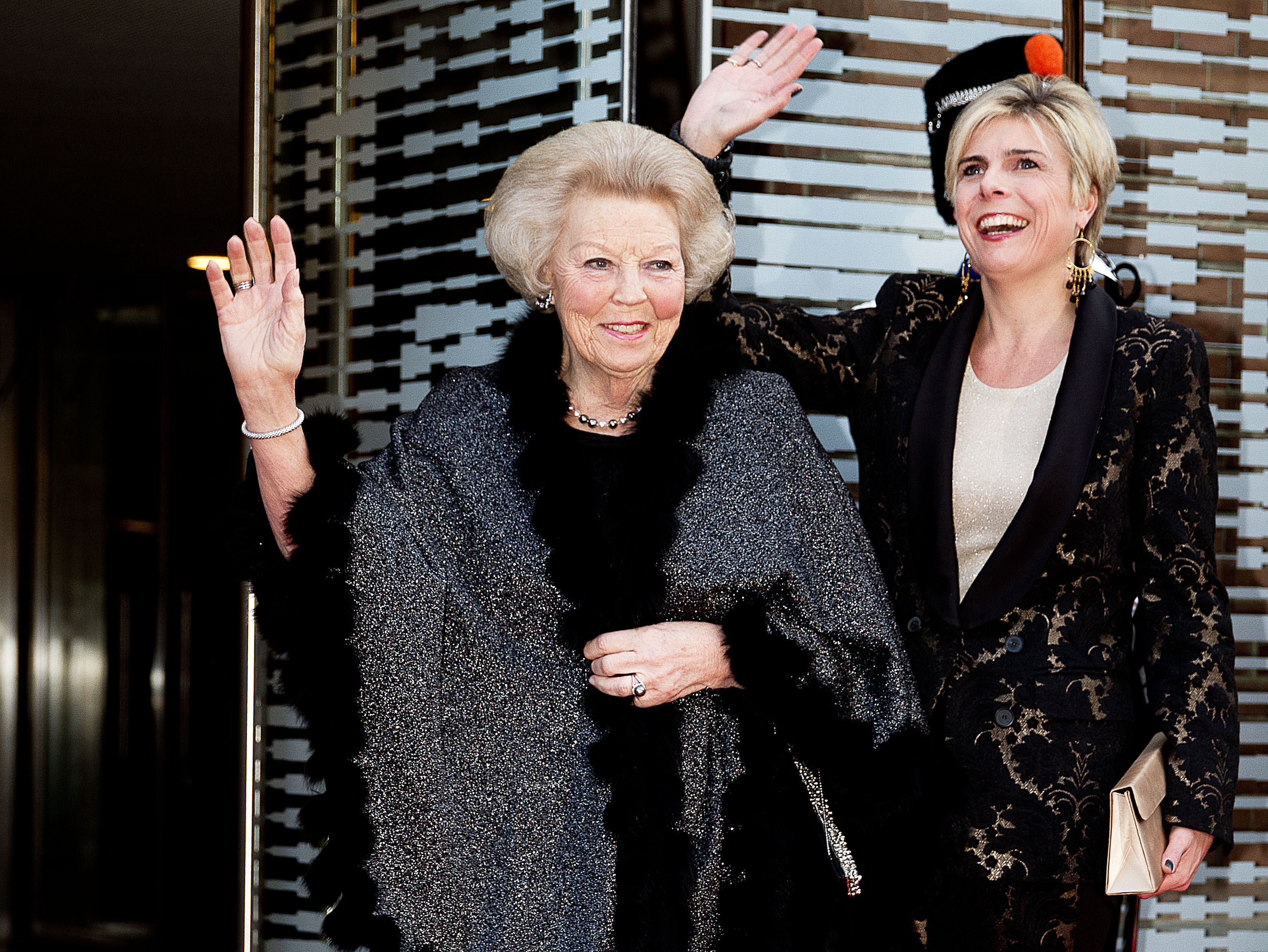 Welke japon prinses Beatrix droeg is door haar cape helaas niet goed te zien. Wel blijkt dat de creatie is gemaakt van een bewerkte zwarte stof en dat de prinses ervoor koos om als juwelen haar parels te dragen.