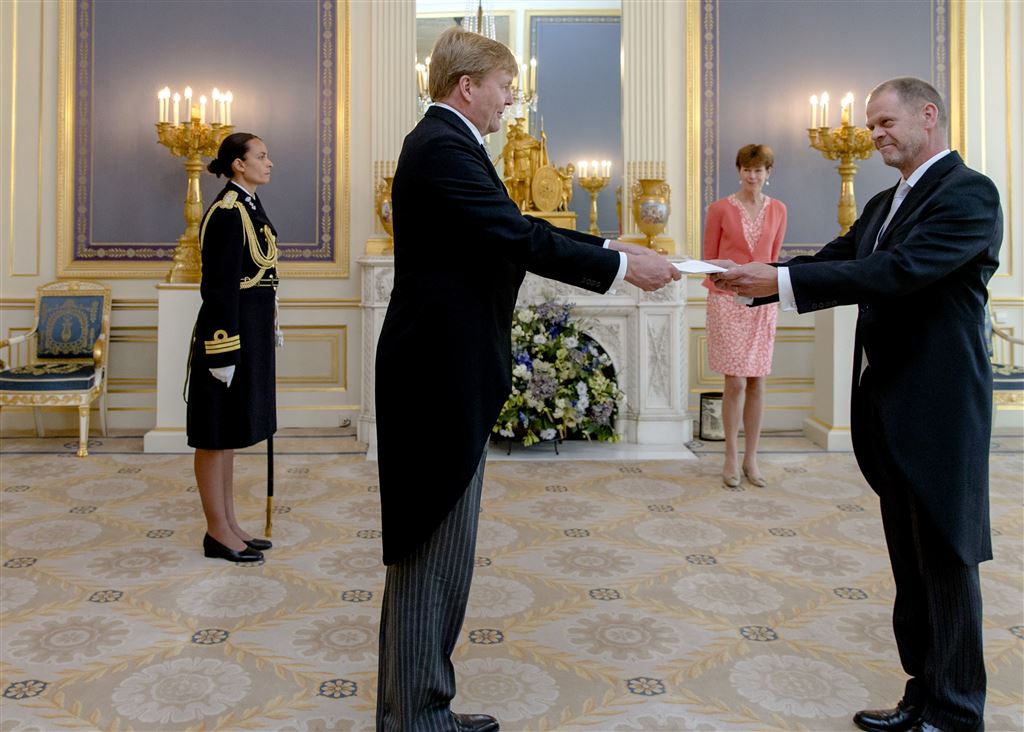 DEN HAAG – Koning Willem-Alexander heeft woensdagochtend op Paleis Noordeinde in Den Haag de geloofsbrieven in ontvangst genomen van de ambassadeurs van Canada, Letland, Sri Lanka en Zweden. Met de brieven wordt het vertrek van de vorige vertegenwoordiger gemeld en verklaard dat de brenger ervan door zijn of haar regering is aangesteld in Nederland.
