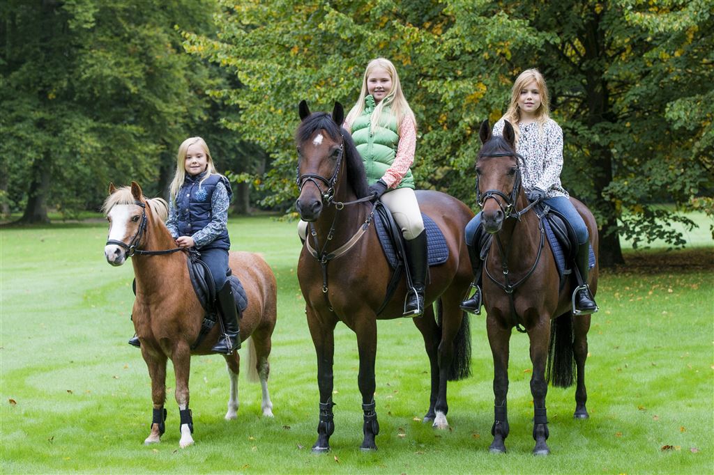 De foto waarop Amalia poseert met haar zusjes, is gemaakt in september tijdens het paardrijden in de omgeving van Apeldoorn. Amalia rijdt op Safary, Alexia op Pixie en Ariane op Fredje. Op de Facebookpagina van het Koninklijk Huis maakt de foto veel reacties los, omdat de dochters van koning Willem-Alexander en koningin Máxima op de foto geen cap dragen.