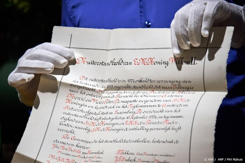 Van Zanen sprak van een spannend en historisch moment, voordat hij de tijdcapsule met witte handschoenen openmaakte. In het kistje zat onder meer een oorkonde met daarop de leden van het comité dat betrokken was bij de totstandkoming van het ruiterstandbeeld van Willem II. Volgens kunsthistoricus Sophie Olie van de gemeente Den Haag staan daar bijna twintig namen op, onder wie die van Emilie Belinfante, een van de eerste vrouwelijke journalisten in Nederland.