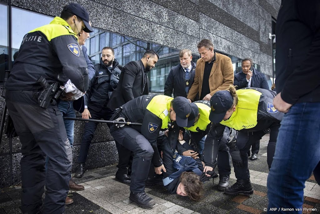 Een woordvoerder meldt dat de vrouw voordat zij in de buurt van de president kon komen door agenten werd tegengehouden. De man wist verder te komen. Volgens een ANP-fotograaf is de man door zo’n zes beveiligers tegen de grond gewerkt en afgevoerd. Ook hield een beveiliger een hand voor de mond van de demonstrant. Hij is later door zo’n vijf agenten afgevoerd.