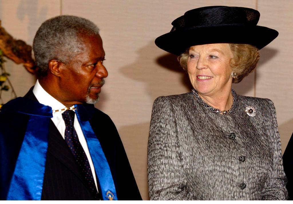 ,,Ze is heel open, heel warm en ook heel wijs. En ze heeft het vermogen om mensen op hun gemak te stellen. Maar ze is ook iemand die heel goed voet bij stuk kan houden. Het is een fascinerende persoonlijkheid, een unieke mengeling van uiteenlopende eigenschappen en kwaliteiten die haar maken tot wie ze is”, zei Annan in een interview met Zembla over de koningin. ,,Volgens mij hebben wij een band die in stand blijft als mijn ambtstermijn als secretaris-generaal erop zit. Zo zou ik het graag zien, en zij denkt er ongetwijfeld net zo over.”