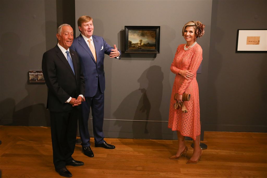 De Portugese president Marcelo Rebelo de Sousa kon woensdag niet wachten om de bijzondere kunsttentoonstelling ‘Rembrandt, Rijksmuseum, Koninklijke Verzamelingen’ te zien in het nationaal museum voor oude kunst. Dus liet hij het Nederlandse koningspaar, dat de mini-expositie in het prestigieuze ‘Museo Nacional Arte Antiga’ zou openen, verrassend weten ook aanwezig te zullen zijn.