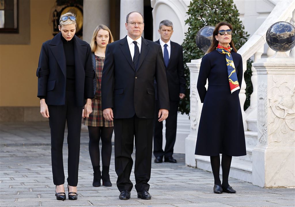 MONACO – Prins Albert II en prinses Charlène van Monaco hebben maandag een minuut stilte in acht genomen voor de slachtoffers van de terroristische aanslagen in Parijs. Albert en Charlène deden dit op het plein van het prinselijk paleis van Monaco, in het bijzijn van een erewacht en samen met prinses Caroline en haar dochter prinses Alexandra.