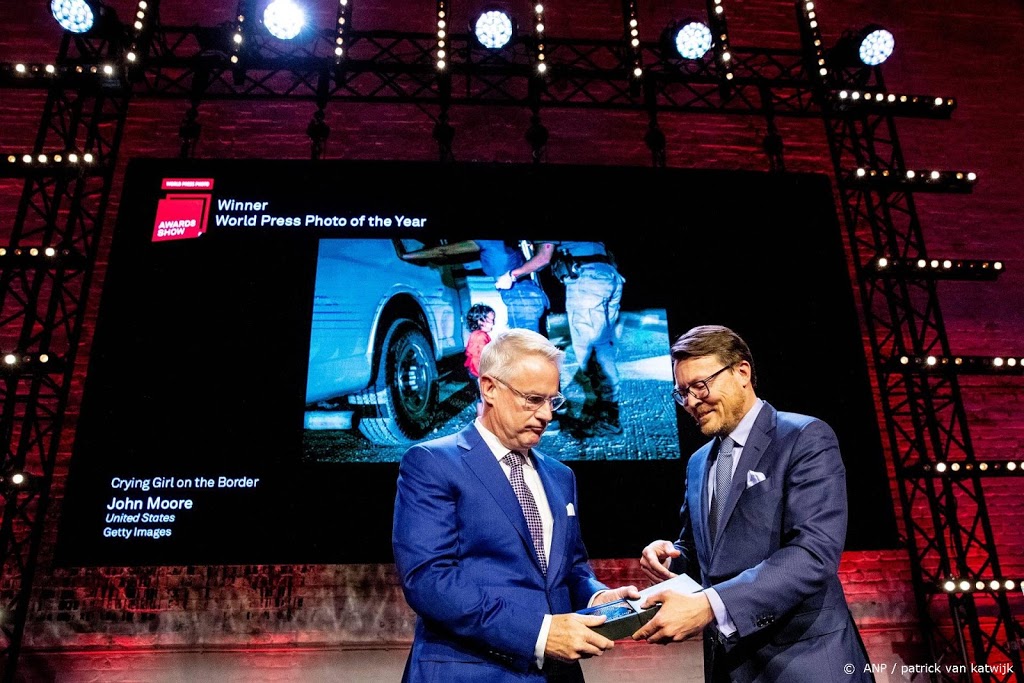 De foto Een huilend meisje aan de grens van de Amerikaanse fotograaf John Moore is uitgeroepen tot World Press Photo van het jaar. Prins Constantijn reikte de prestigieuze fotoprijs donderdagavond uit tijdens een awardshow in de de Westergasfabriek in Amsterdam.