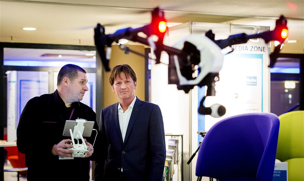 Pieter-Christiaan bekeek verschillende drones na de opening. Bezoekers van de beurs krijgen allerlei toepassingen te zien waarbij drones worden ingezet, zowel op het terrein van veiligheid als voor de landbouw, industrie en op het gebied van entertainment.