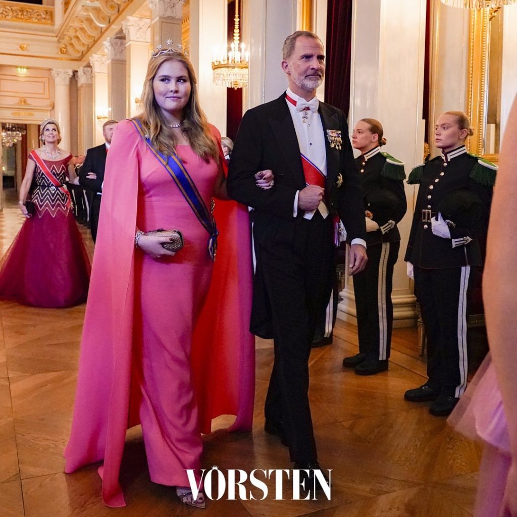 Verder droeg de prinses voor haar eerste officiële galadiner ter ere van de achttiende verjaardag van de Noorse prinses Ingrid Alexandra de huwelijksdiadeem van haar moeder. Koningin Máxima kiest zelf ook vaak voor het modehuis Natan, maar droeg vrijdagavond een rode galajurk van de ontwerper Jan Taminiau. Ingrid Alexandra had zelf een tiara op van haar betovergrootmoeder, prinses Ingeborg van Denemarken.