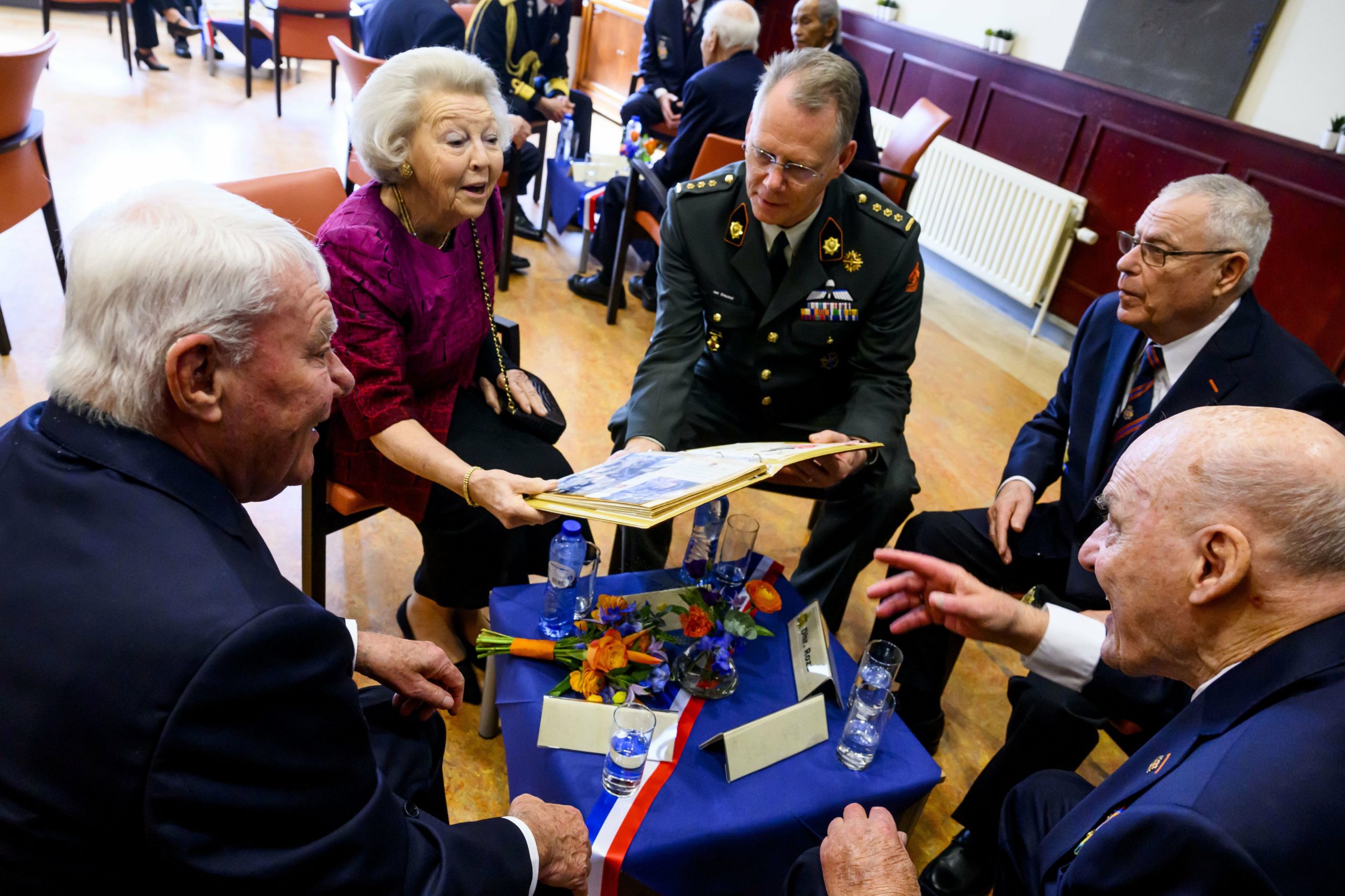 Prinses Beatrix heeft vrijdag haar bezoek aan het Koninklijk Tehuis voor Oud-Militairen en Museum Bronbeek in Arnhem ingehaald. De 85-jarige prinses zou eigenlijk vorige maand al langsgaan, maar dat ging niet door omdat ze haar pols had gebroken tijdens een wintersportvakantie in Oostenrijk. Beatrix had haar pols vrijdag nog steeds in het gips.