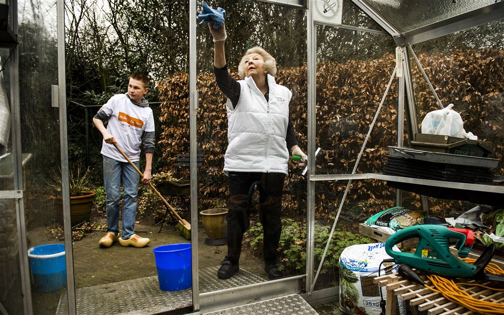 BARNEVELD – Prinses Beatrix heeft vrijdagochtend tijdens de elfde editie van NLdoet de handen uit de mouwen gestoken in Barneveld. De prinses lapte de vieze ramen van de kas in de tuin van verpleeghuis Norschoten.