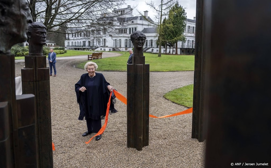In de tuin van haar ouderlijk huis Paleis Soestdijk in Baarn heeft prinses Beatrix donderdagochtend de bronzen beeldengroep Het Koninklijk Gezin onthuld. De 86-jarige prinses deed dat door een oranje lint, dat om de vijf sokkels was gespannen, los te trekken. Het was de tweede keer dat Beatrix het beeld onthulde. Eerder deed ze het in 1996 in Beelden aan Zee, het Haagse museum dat het werk nu voor vijf jaar in bruikleen heeft gegeven aan Paleis Soestdijk.