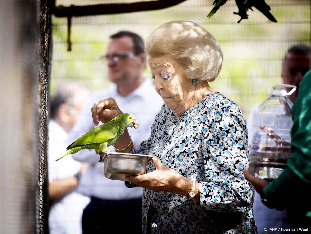 Prinses Beatrix is ooit door haar papegaai gebeten. Dat vertelde de prinses vrijdagochtend in het Parke Nacional Arikok in Aruba toen zij daar een kooi met ‘lora’s’ instapte. Dit is een geelvleugelamazone, een soort papegaai die al tachtig jaar niet meer in het wild is gezien. De prinses mocht zo’n tien lora’s voeren die zijn gevonden door de douane en binnenkort worden uitgezet in de natuur.