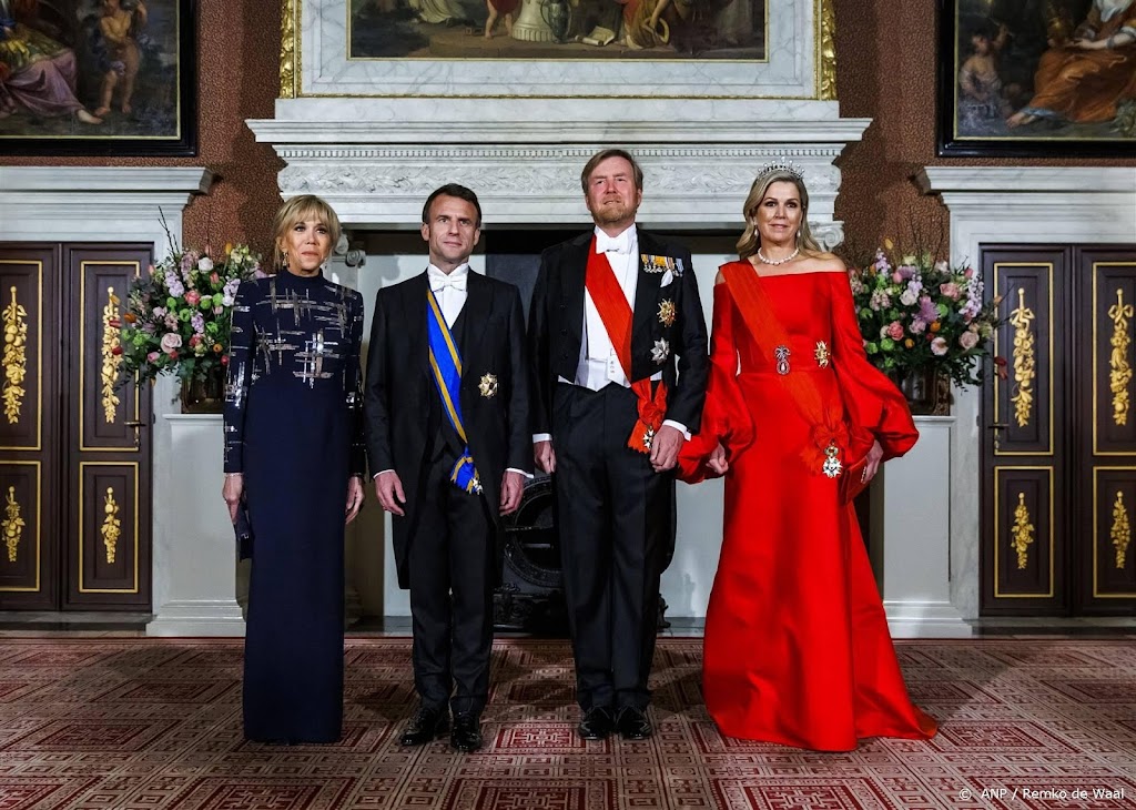 De genodigden van het staatsbanket voor president Emmanuel Macron en zijn vrouw Brigitte sluiten het diner dinsdagavond af met een bombe (ijsdessert) gemaakt van het Nederlandse snoepje Haags Hopje. Het diner voor 214 gasten is bereid door Willem-Pieter van Dreumel, de chef-kok van het Koninklijk Huis.