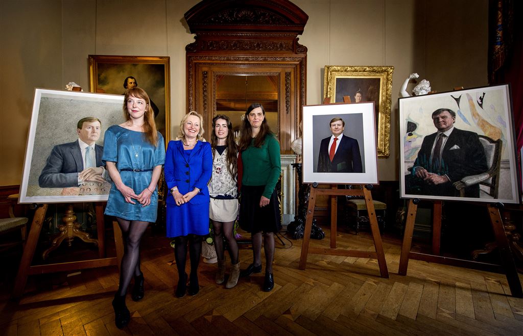 Otten schilderde de koning tegen een achtergrond geïnspireerd op de stof waarmee de troon in de Ridderzaal is bekleed. Van Dongen schilderde Willem-Alexander tegen een abstracte achtergrond met zijn gezicht deels in de schaduw. Dijkstra maakte een foto van de koning in een blauw pak met rode stropdas en wit overhemd, de kleuren van de Nederlandse vlag.