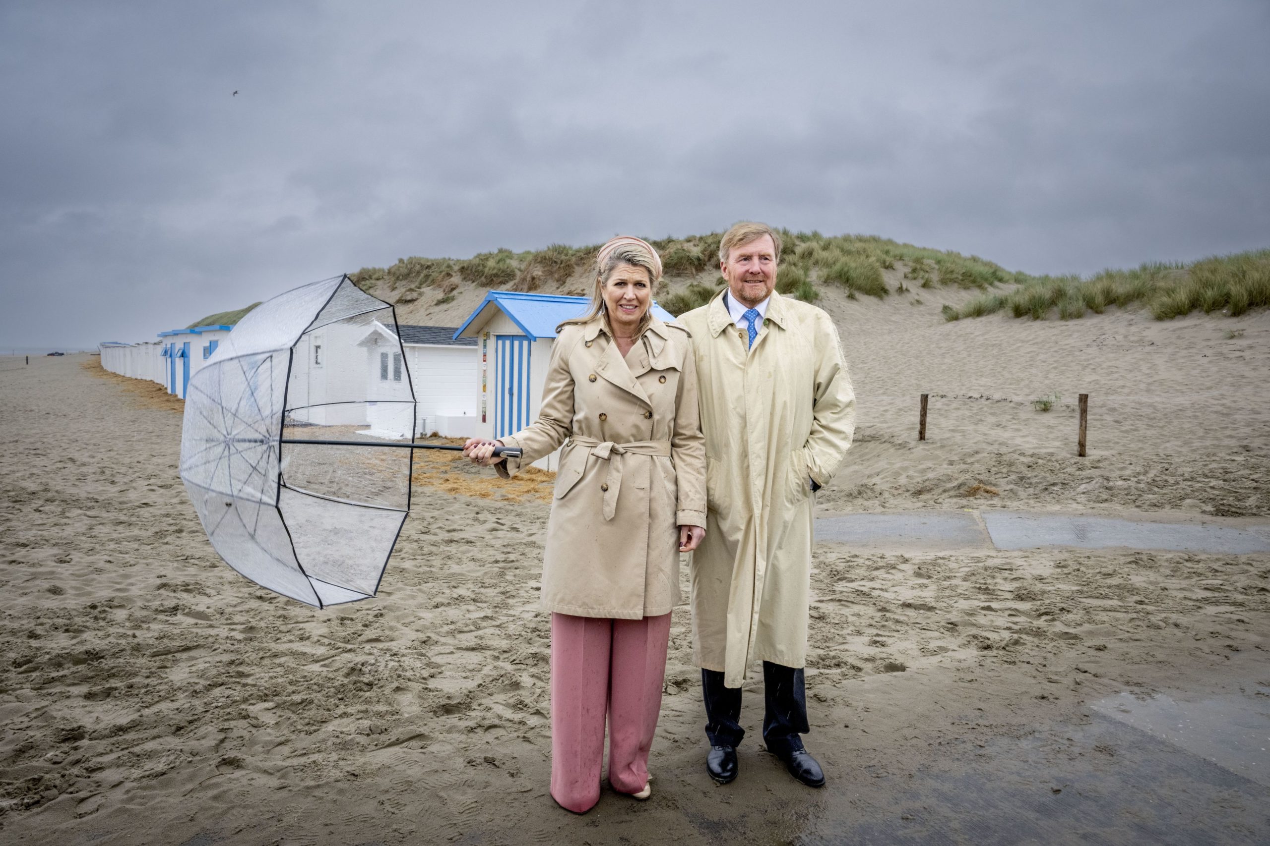 De koning en koningin werden op hun korte wandeling richting het strandpaviljoen op Texel begroet door zo’n dertig inwoners van Texel die hen in de stromende regen stonden op te wachten. De koning schudde enkele handen. Eenmaal binnen ontmoette het paar zogenoemde hulpstrandvonders: zes mensen die dag en nacht klaarstaan voor als er iets gebeurt op zee. Aan het eind van het gesprek overhandigden ze de koning en koningin een boek vol “stoere verhalen van de strandjutters van Texel”.