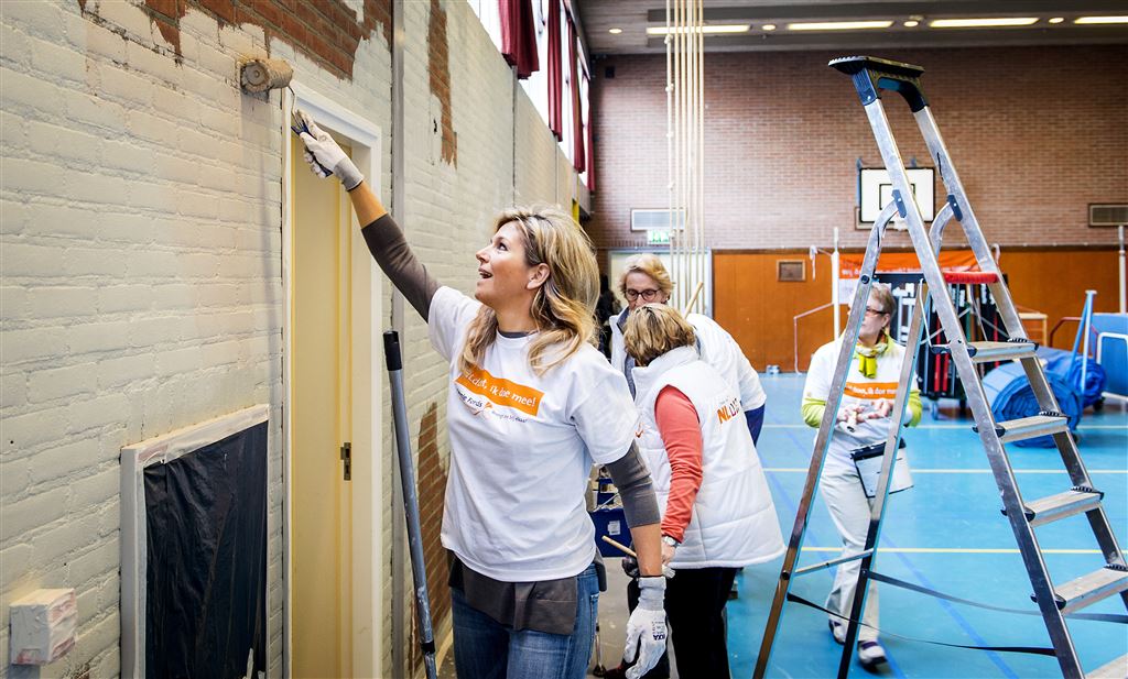 Schmidt: ”We hebben de muren schoongemaakt, de buitenboel gedaan en de gymnastiekzaal geverfd. Aanvankelijk hadden we activiteiten bedacht voor twintig personen, maar uiteraard moest het gezelschap van het Oranje Fonds ook werk hebben, dus hebben we op het laatste moment nog een blik werk open getrokken.”