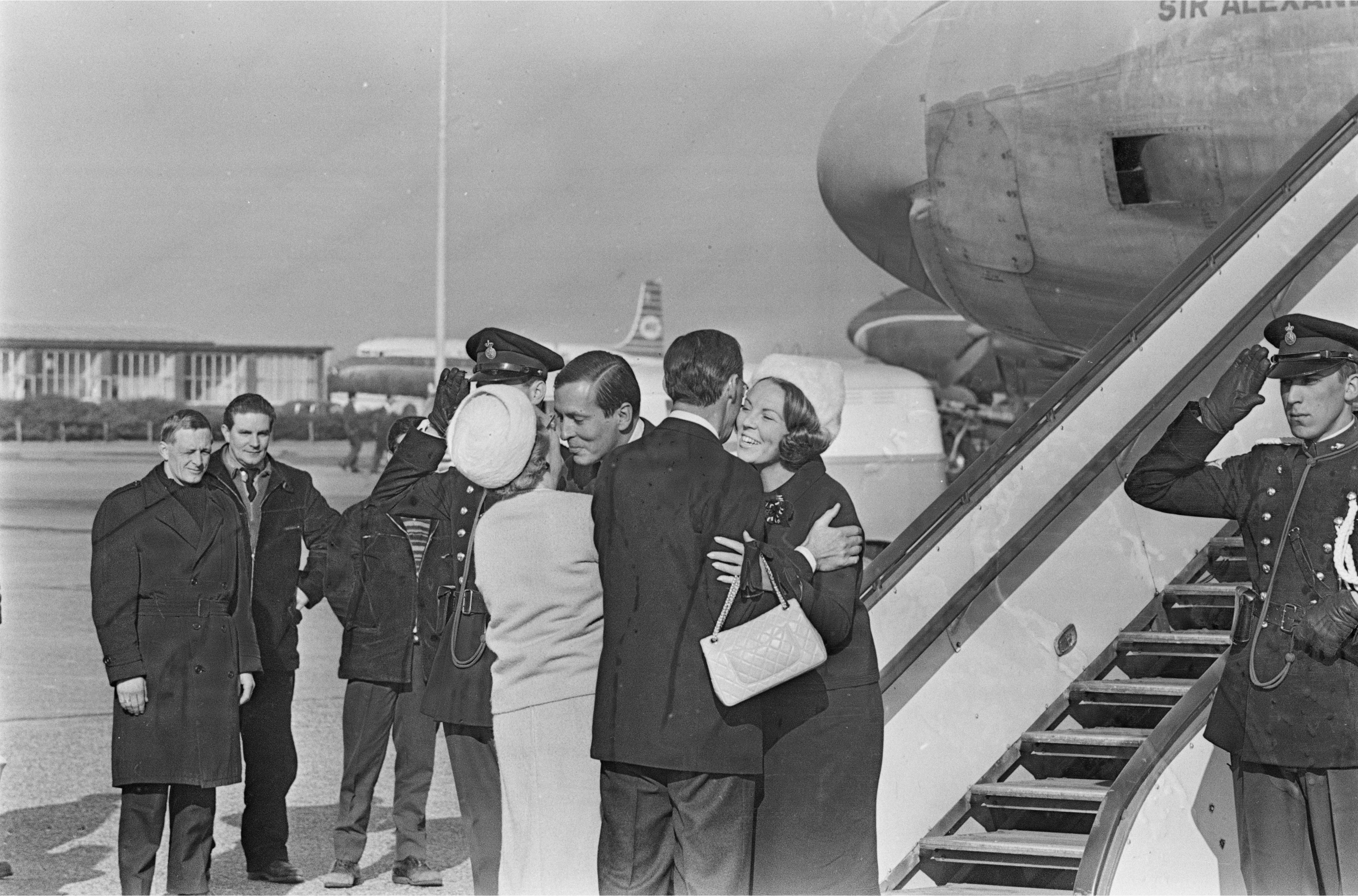 Het is vrijdag een halve eeuw geleden dat prinses Beatrix en prins Claus terugkeerden van hun huwelijksreis. Koningin Juliana en prins Bernhard stonden op Schiphol klaar om ze te ontvangen.